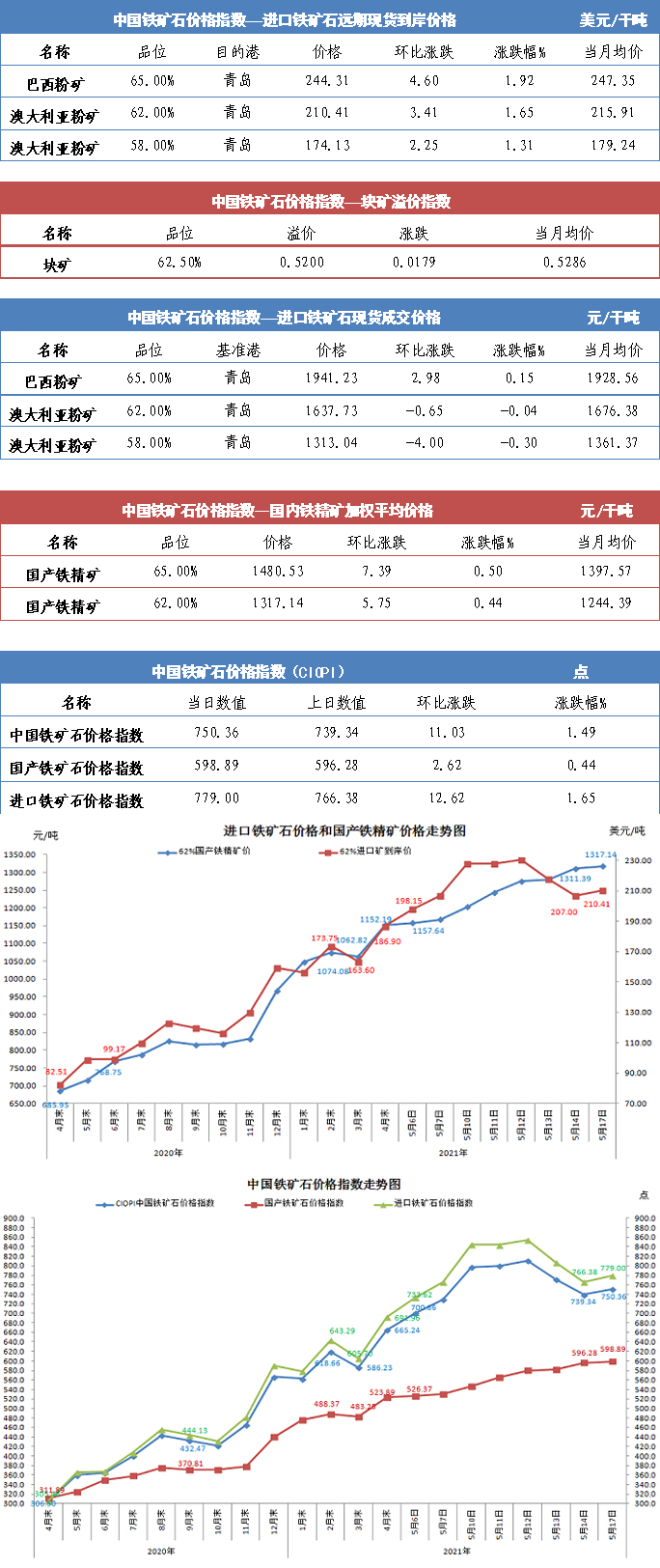 【行業指數】5月17日中國鐵礦石價格指數