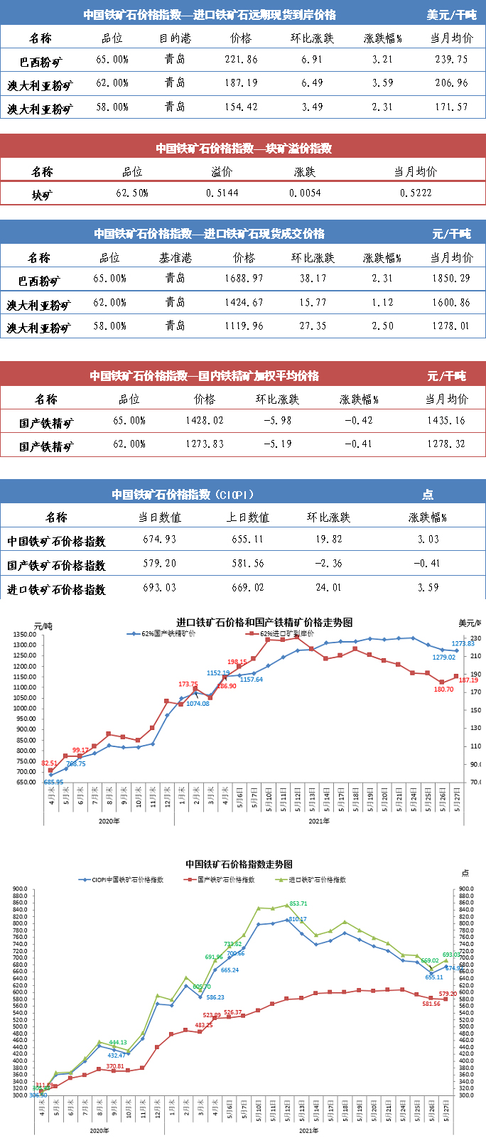 【行業指數】5月27日中國鐵礦石價格指數