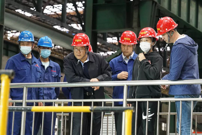 中宣部《鋼鐵脊梁》攝製項目組到普陽鋼鐵前采向建黨百年獻禮