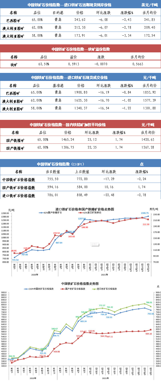 【行業指數】6月16日中國鐵礦石價格指數