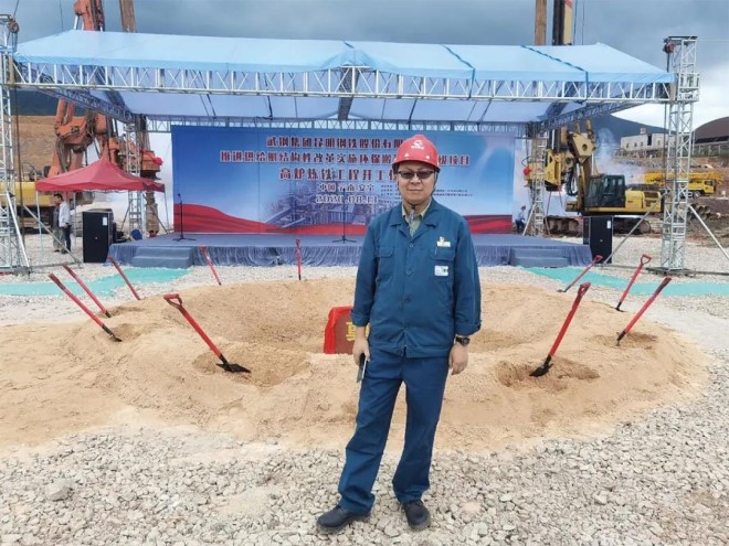 圖為2020年8月份李淼在昆鋼新區二期2500立方米高爐開工儀式。(昆鋼 供圖)