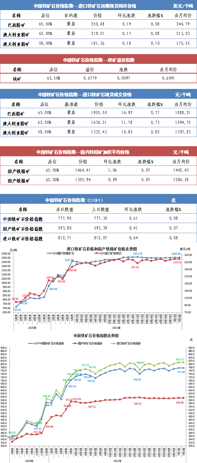 【行業指數】7月2日中國鐵礦石價格指數