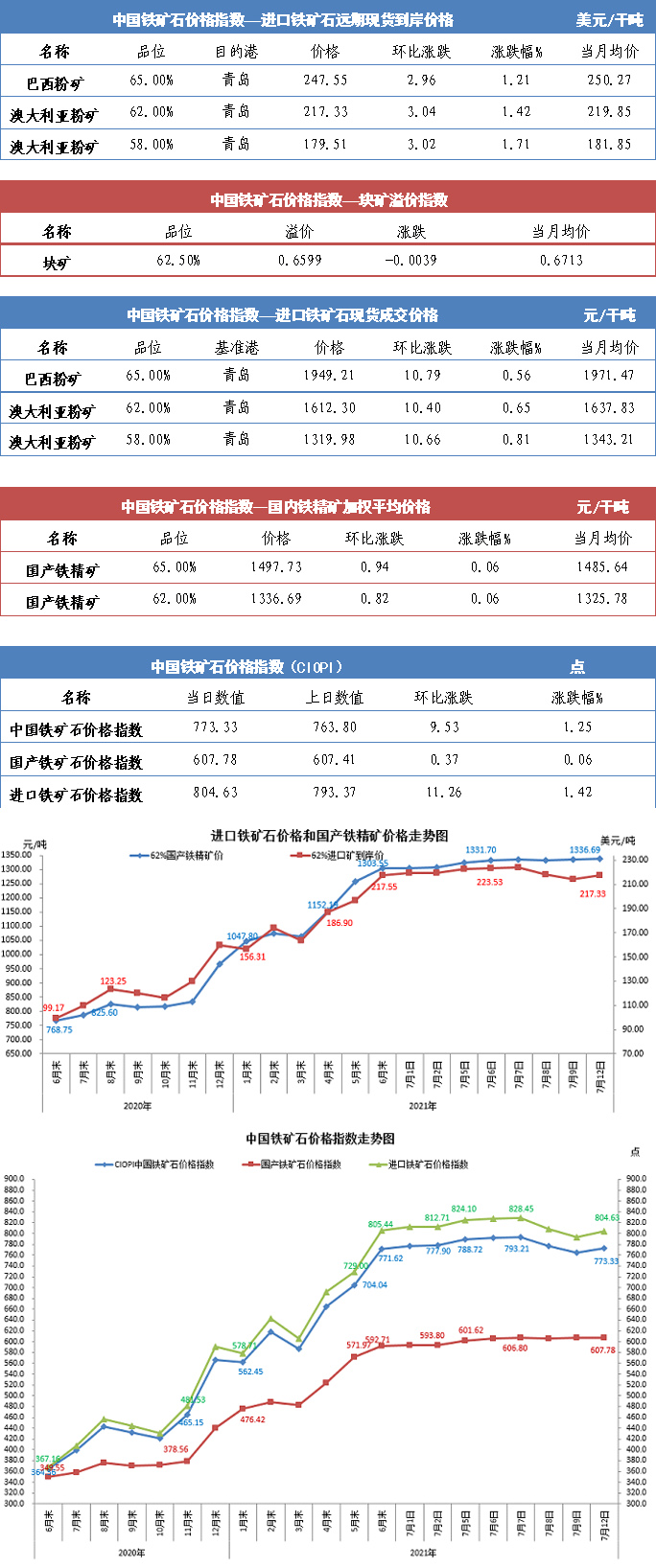 【行業指數】7月12日中國鐵礦石價格指數
