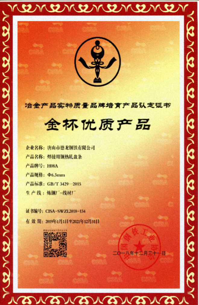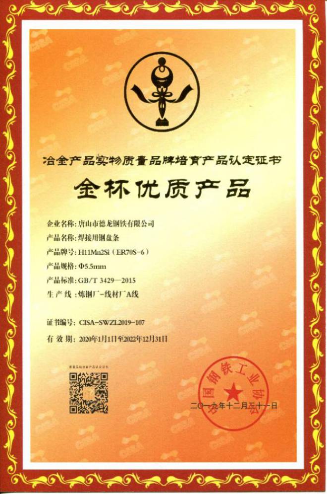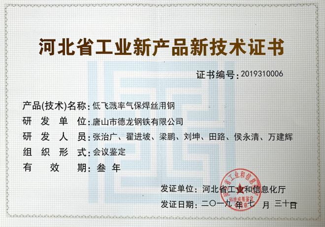 此ci外wai,為wei滿man足zu用yong戶hu的de不bu同tong質zhi量liang需xu求qiu,唐tang山shan德de龍long在zai開kai發fa了le低di飛fei濺jian率lv氣qi保bao焊han絲si熱re軋zha盤pan條tiao和he高gao效xiao拉la拔ba氣qi保bao焊han絲si焊han接jie用yong鋼gang熱re軋zha盤pan條tiao之zhi後hou,又you連lian續xu開kai發fa了le壓ya力li容rong器qi用yong埋mai弧hu焊han絲si熱re軋zha盤pan條tiao、低厚度氧化鐵皮焊條鋼等多個定製化鋼種,深受用戶好評。