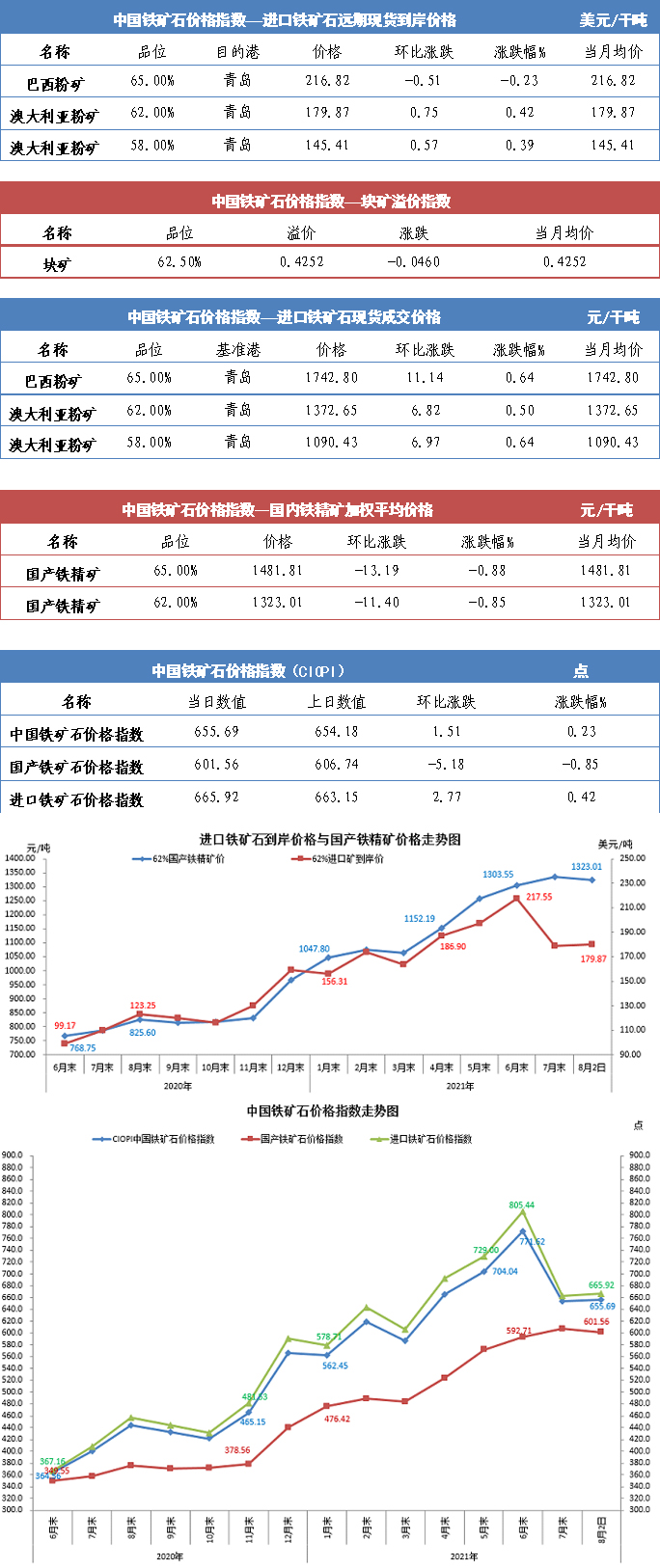 【行業指數】8月2日中國鐵礦石價格指數