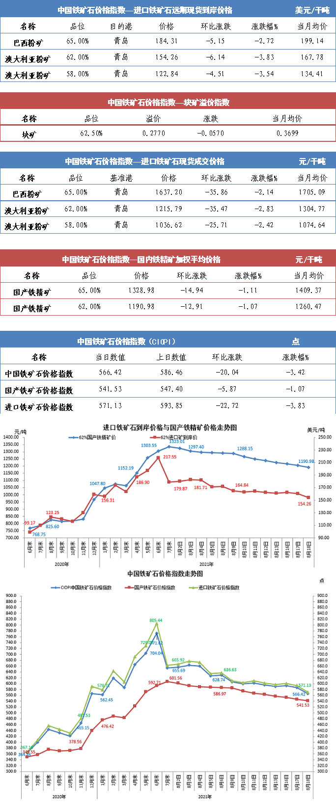 【行業指數】8月18日中國鐵礦石價格指數
