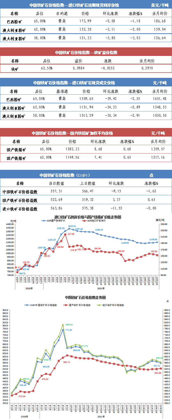 【行業指數】8月31日中國鐵礦石價格指數