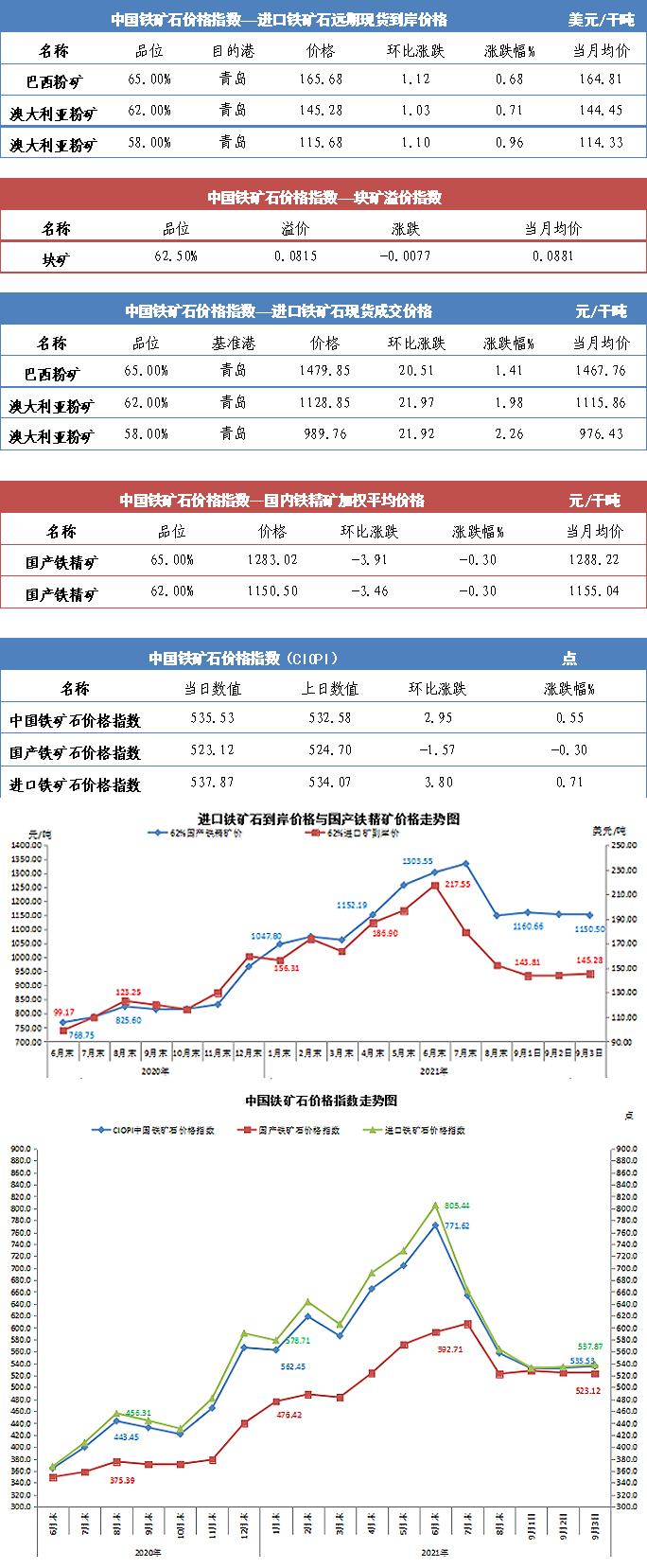【行業指數】9月3日中國鐵礦石價格指數