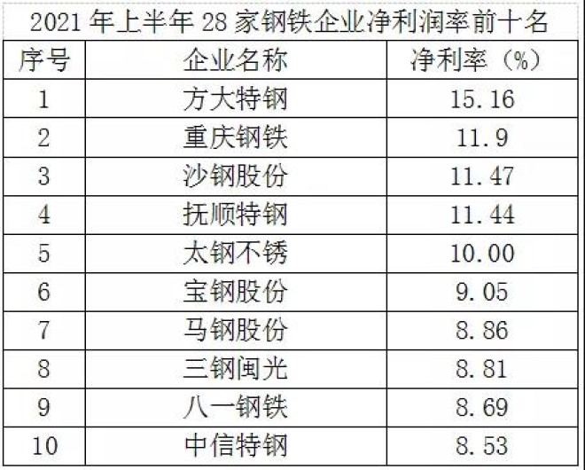 中國上市鋼鐵企業2021年上半年運營情況分析