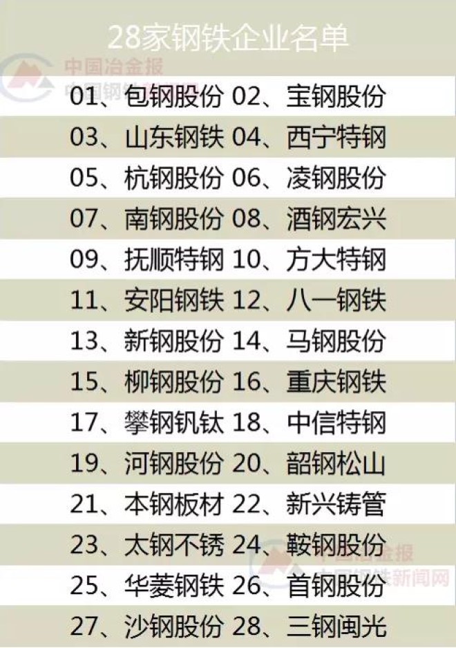 附件:28家鋼鐵企業名單