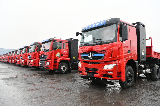 為加快推進清潔運輸,陝鋼集團今年以來經過了多方調研,於8月24日與中國兵器工業集團北奔重型汽車集團有限公司、國家電投集團簽訂了清潔運輸-新能源電動重卡戰略合作協議,達成首批60台新能源電動重卡合作項目,其中45台由中國兵器工業集團北奔重型汽車集團生產提供、15台由陝汽控股集團生產提供。