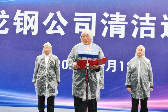 韓城市人民政府副市長郭繼鋒,國家電投集團綠電交通產業創新中心主任、上海啟源芯動力科技公司總經理郭鵬,中國兵器工業集團北奔重型汽車集團總經理、黨委副書記郭平曉,陝西汽車控股集團有限公司副總經理楊誌剛,龍鋼公司黨委書記、董事長陳驍分別致辭,龍鋼公司總經理劉安民主持儀式。
