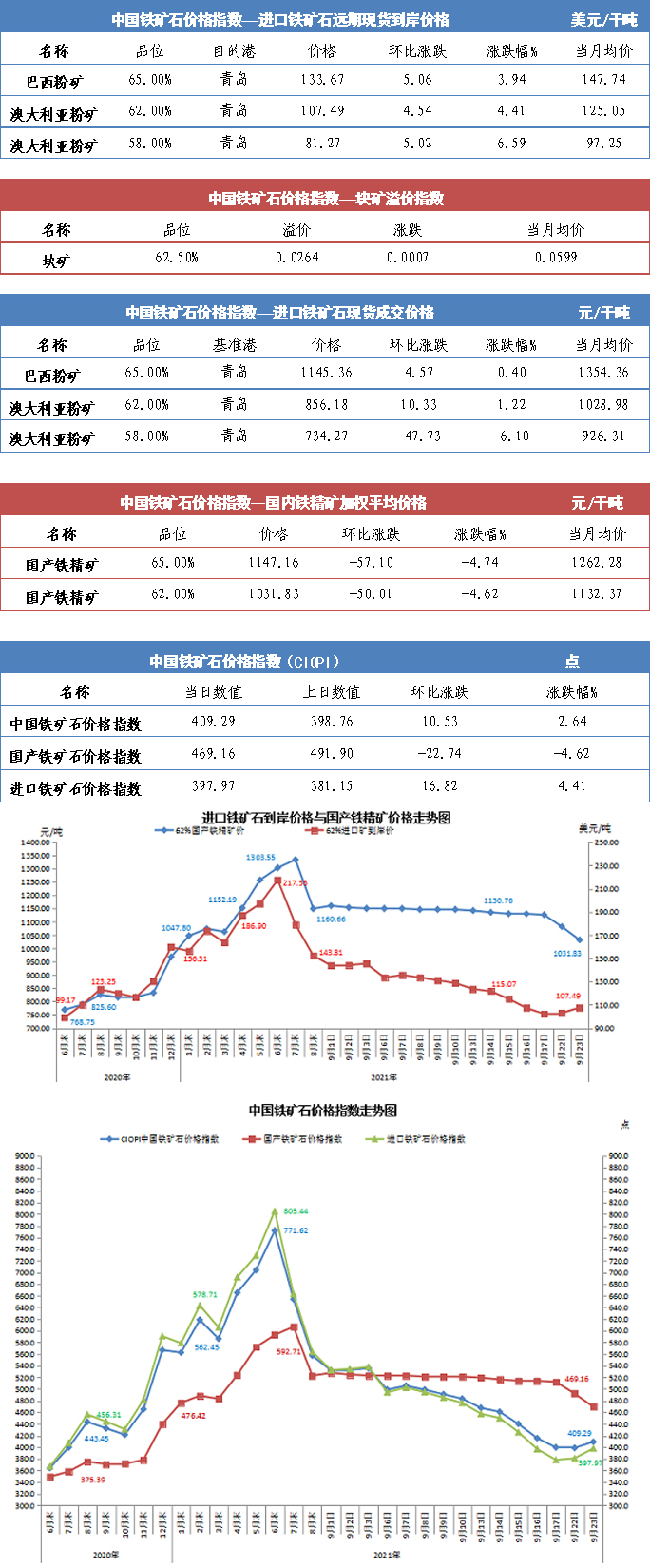 【行業指數】9月23日中國鐵礦石價格指數