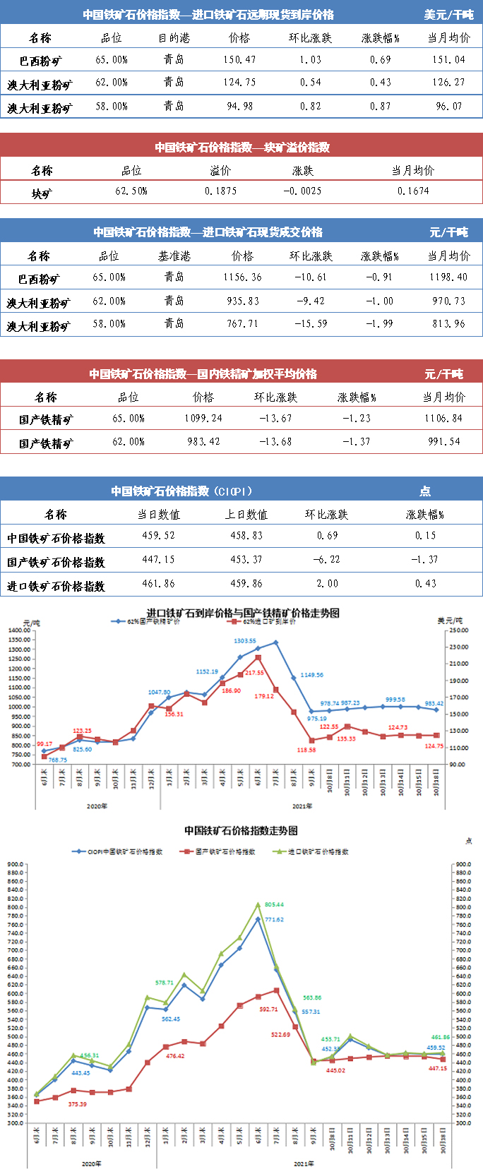 【行業指數】10月18日中國鐵礦石價格指數