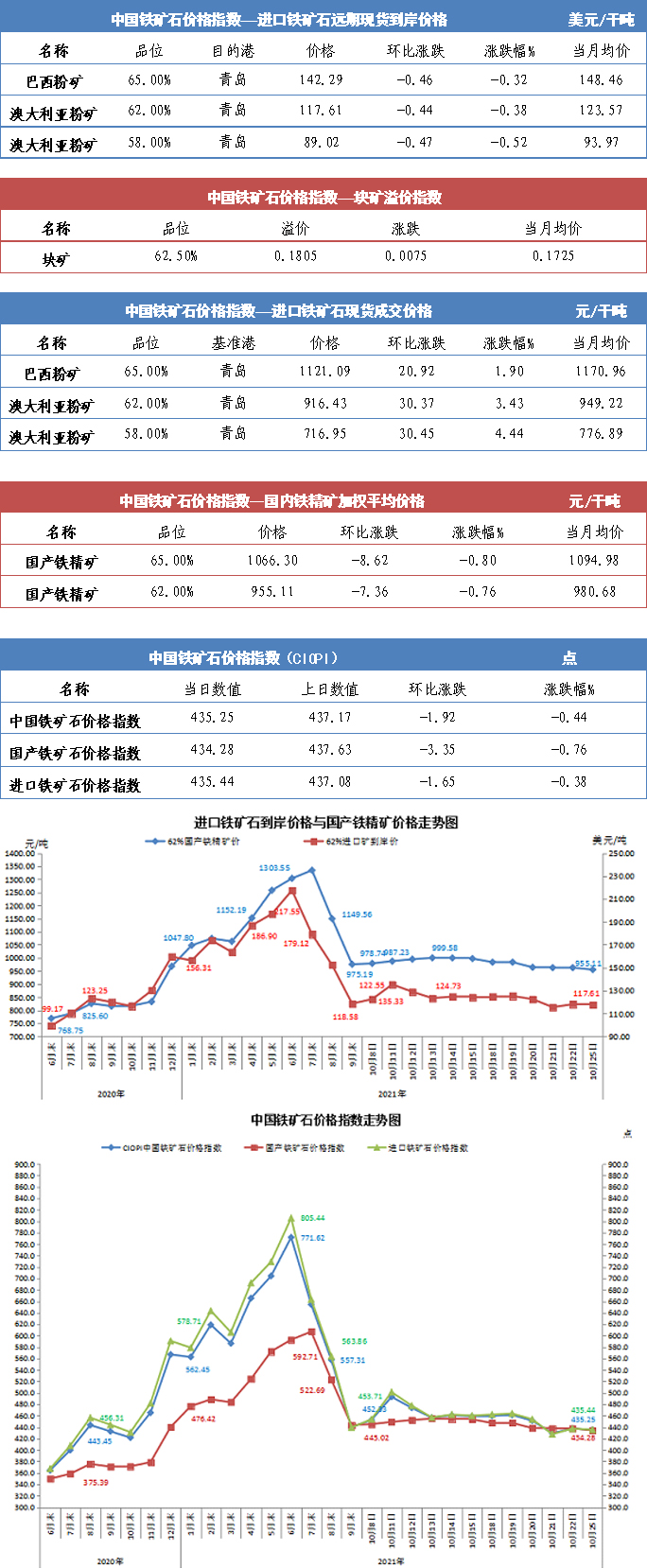 【行業指數】10月25日中國鐵礦石價格指數