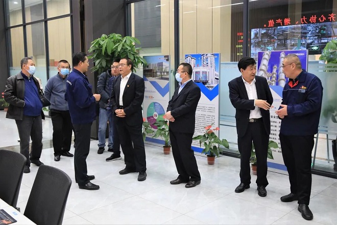 圖為技術調研組領導專家在晉南鋼鐵沃能化工中控大廳參觀交流