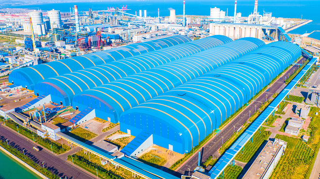 “原料場主要承擔日照公司各種大宗原燃物料的接卸、儲存、供應任務。接卸及中轉的物料種類近20種,年中轉量2000多萬噸,平均作業率85%以上。物料實現全封閉管理,一個封閉儲煤棚,儲煤量20多萬噸;兩個儲礦棚,儲存量130多萬噸。”聶延忠介紹。
