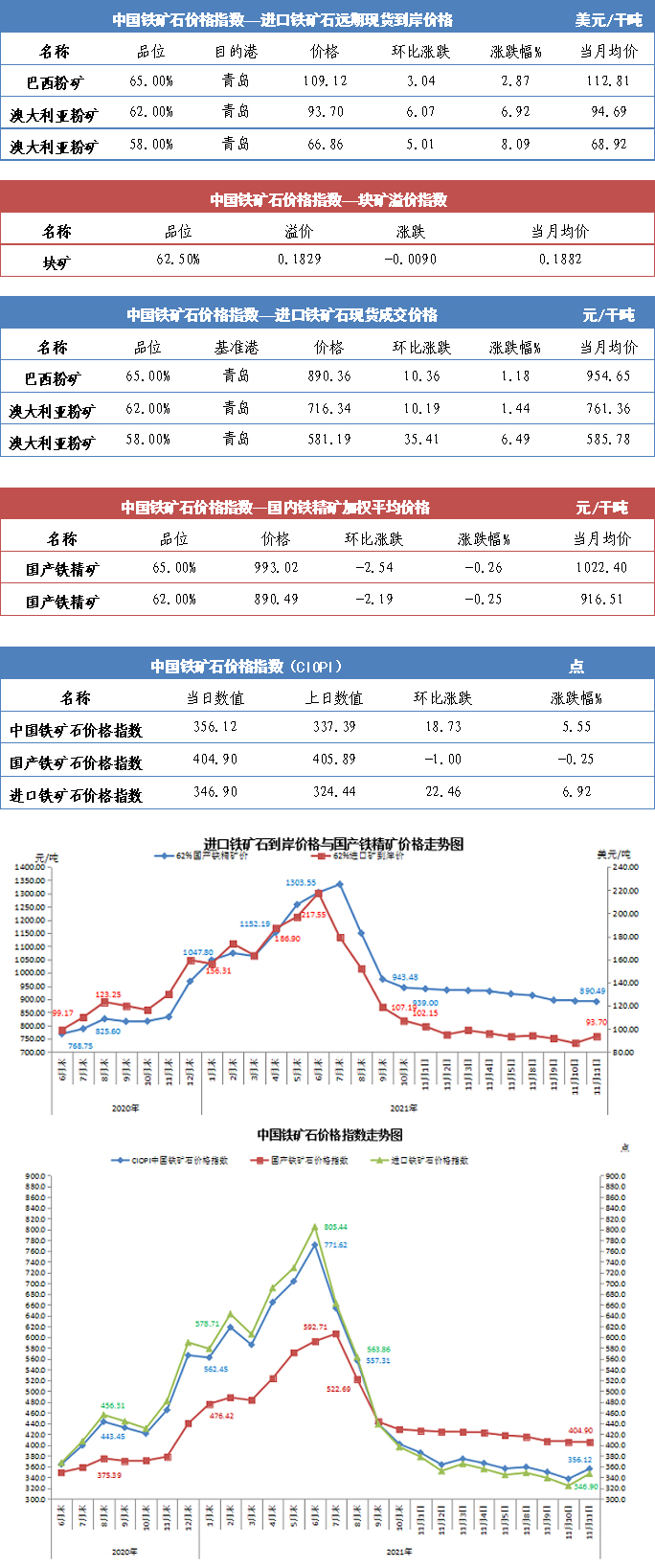 【行業指數】11月11日中國鐵礦石價格指數
