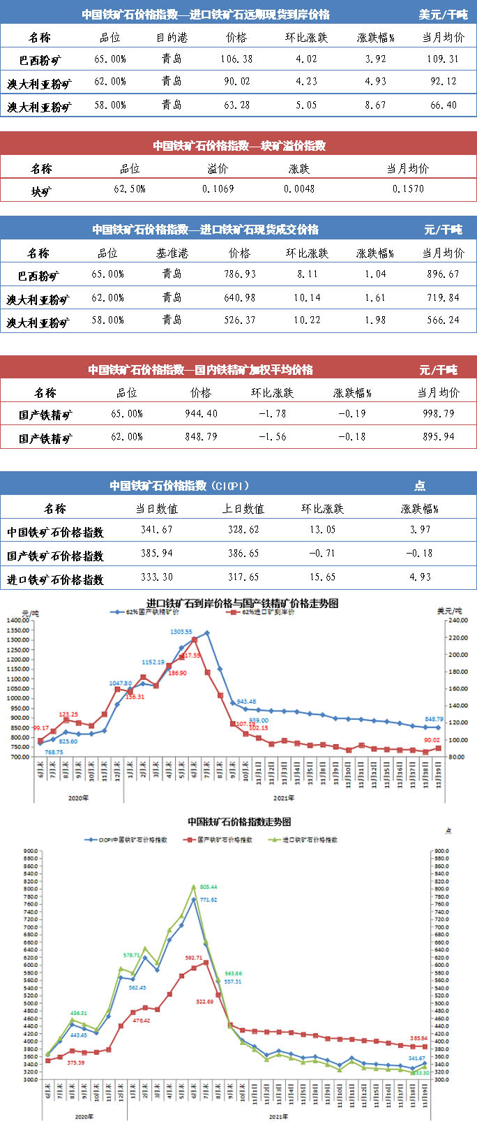 【行業指數】11月19日中國鐵礦石價格指數