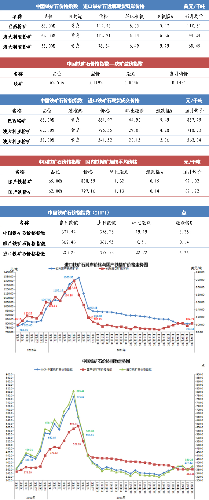 【行業指數】11月29日中國鐵礦石價格指數