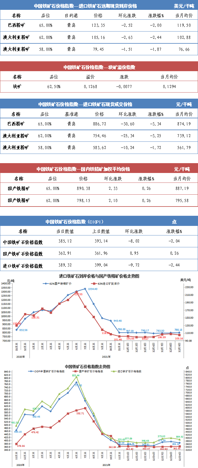 【行業指數】12月9日中國鐵礦石價格指數
