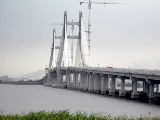 圖為處理後鋼渣應用於江蘇南通冬沙大橋。