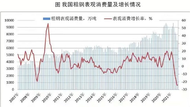 我wo國guo供gong給gei側ce結jie構gou性xing改gai革ge取qu得de階jie段duan性xing成cheng果guo。今jin年nian下xia半ban年nian以yi來lai,受shou多duo種zhong因yin素su影ying響xiang,我wo國guo粗cu鋼gang表biao觀guan消xiao費fei進jin入ru下xia行xing通tong道dao,與yu去qu年nian同tong期qi相xiang比bi,下xia降jiang幅fu度du逐zhu漸jian擴kuo大da。到dao9月份、10月份,下降速度超過20%,已遠遠超過鋼鐵行業最為困難的2015年,也超過了世界金融危機時期的2008年。參見下圖。