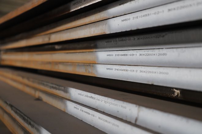 品種:普陽鋼鐵形成了以NM360、NM400、NM450、NM500等級別為主的低合金高強度中厚板耐磨鋼產品係列,具備批量生產厚度在6毫米~80毫米、寬度在1600毫米~3200毫米所有規格鋼板的能力。