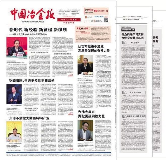 《中國冶金報》全麵聚焦鋼鐵企業黨史學習教育,尤其是邀請了鋼鐵企業各級黨委書記暢談學黨史的心得體會,分享他們學黨史與謀發展相結合、傳承紅色鋼鐵基因、推動鋼鐵企業“十四五”高質量發展的真知灼見。與此同時,《中國冶金報》還選取了行業內在深入開展黨史學習教育方麵有可借鑒經驗的優秀企業,並刊發係列報道。