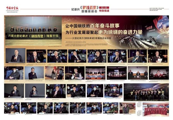 今年11月29日,大型紀錄片《鋼鐵脊梁》在(zai)央(yang)視(shi)財(cai)經(jing)頻(pin)道(dao)黃(huang)金(jin)時(shi)段(duan)震(zhen)撼(han)播(bo)出(chu)。該(gai)紀(ji)錄(lu)片(pian)是(shi)由(you)中(zhong)國(guo)鋼(gang)鐵(tie)工(gong)業(ye)協(xie)會(hui)提(ti)出(chu)申(shen)請(qing),並(bing)經(jing)中(zhong)宣(xuan)部(bu)批(pi)準(zhun),中(zhong)央(yang)廣(guang)播(bo)電(dian)視(shi)總(zong)台(tai)拍(pai)攝(she)製(zhi)作(zuo),主(zhu)要(yao)鋼(gang)鐵(tie)企(qi)業(ye)全(quan)力(li)配(pei)合(he)和(he)中(zhong)國(guo)冶(ye)金(jin)報(bao)社(she)具(ju)體(ti)組(zu)織(zhi)完(wan)成(cheng)的(de)。《鋼鐵脊梁》yiqingzhujiandangbainianweizhuti,jinzhuazhongguogangtiejiliangdegenyuhun,tongguoyigegejuyoudaibiaoxingdezhenshigushi,shengdongzhanxianlezhongguogangtiegongyezaidangdelingdaoxiacongxiaodaoda、從弱到強的苦難輝煌,一經播出就在全行業引起轟動。