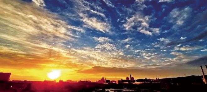金色輝映的八鋼廠區。(姚海山 攝)