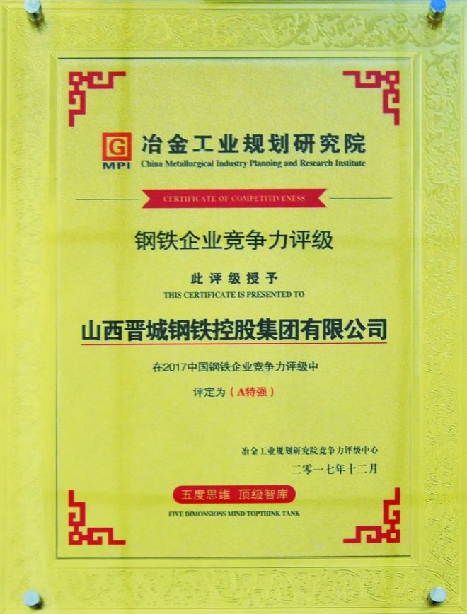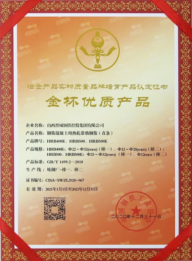 圖為晉鋼獲得“2021中國優秀鋼鐵企業品牌”。