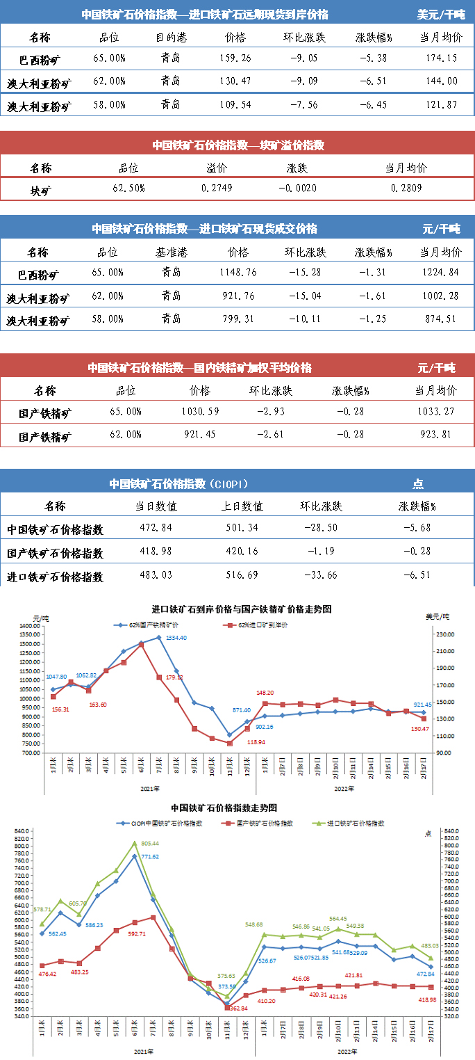 【行業指數】2月17日中國鐵礦石價格指數