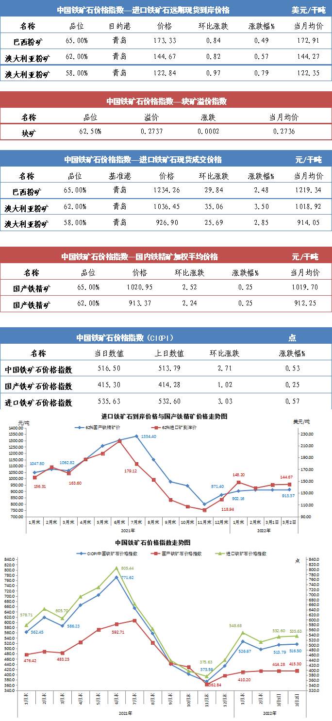 【行業指數】3月2日中國鐵礦石價格指數
