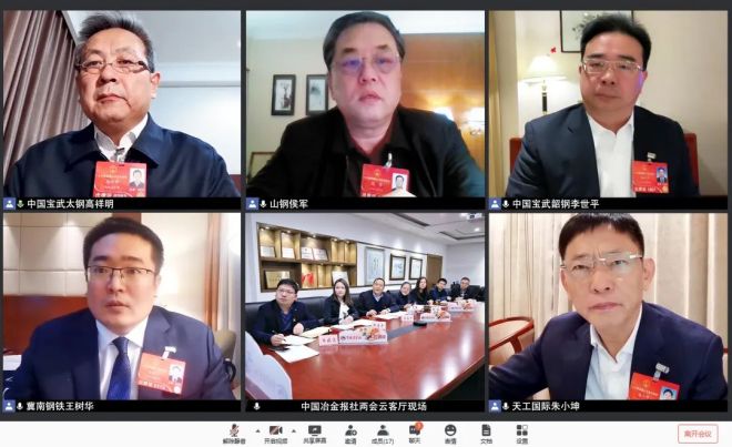 3月6日,來自鋼鐵行業的5位全國人大代表,通過視頻連線“雲聚”中國冶金報社兩會會客廳,就鋼鐵行業穩增長、促進供需平衡等話題展開交流討論。圖為 “雲合照”。