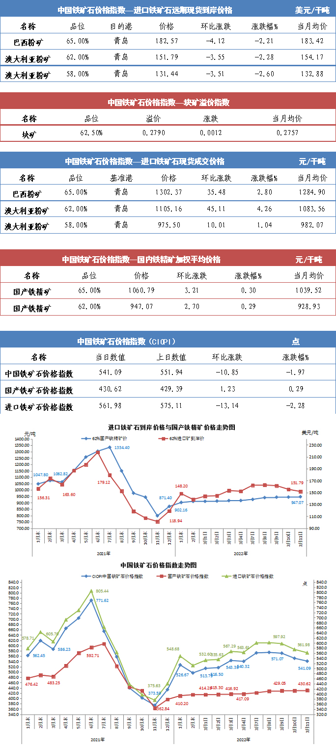 【行業指數】3月11日中國鐵礦石價格指數