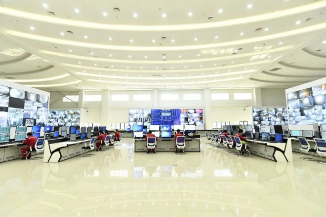 步入沙鋼鐵前管控中心,一股濃濃的智慧化氣息撲麵而來。1800平ping方fang米mi的de大da廳ting裏li,數shu十shi塊kuai電dian子zi大da屏ping幕mu上shang動dong態tai顯xian示shi著zhe鐵tie前qian係xi統tong不bu同tong生sheng產chan工gong序xu的de實shi時shi監jian測ce畫hua麵mian,調tiao度du員yuan輕qing輕qing點dian擊ji鼠shu標biao,通tong過guo一yi鍵jian發fa送song指zhi令ling,便bian完wan成cheng與yu生sheng產chan現xian場chang的de調tiao度du協xie調tiao。據ju了le解jie,這zhe些xie生sheng產chan數shu據ju將jiang通tong過guo生sheng產chan調tiao度du等deng係xi統tong,向xiang上shang對dui接jie數shu字zi化hua經jing營ying管guan理li平ping台tai,向xiang下xia對dui接jie各ge數shu字zi化hua、智能化產線,全麵實現公司、分廠兩級的數字化大生產調度。