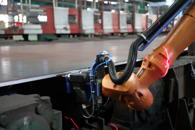 智能工廠建設初現成效。基於物聯網、大數據、雲計算、人工智能等新一代信息技術,在柳州基地重點加快智能化場景應用推廣,包括:轉爐廠爐口火焰AI識別,棒型廠自動焊牌機器人,中板廠鋼板表麵質量在線檢測、冷軋廠無人行車、熱軋廠加熱爐智能燃燒控製、全國首家中板智能標牌焊接機械臂和5G熱軋原料庫無人行車等。