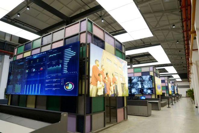 韶鋼鬆山智慧中心,是韶鋼高效集控、時尚工作、智慧決策的標誌性項目,5+2“島式”布局,整合鐵區和能介全部單元的控製與決策。