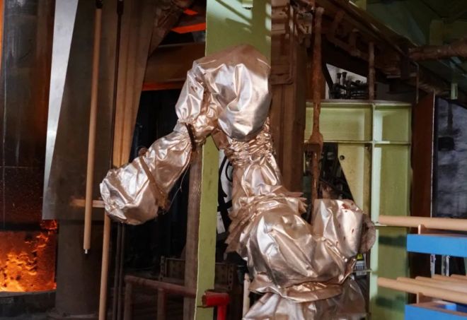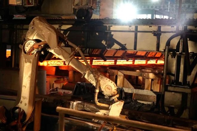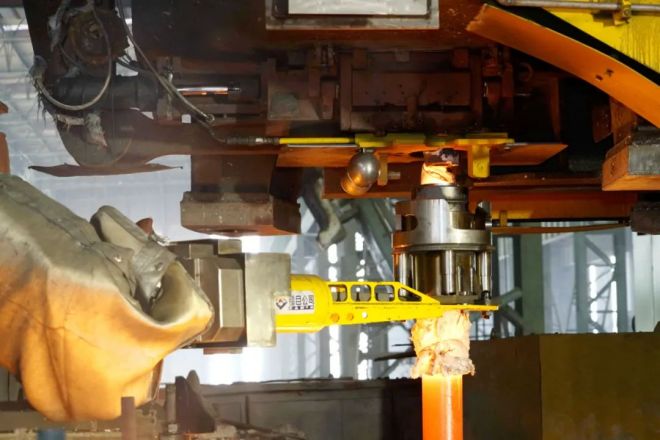 韶鋼連鑄大包自動澆鋼項目,機器人替代員工完成大包滑板油缸、長水口裝拆、燒氧引流、中包測溫取樣、添加保溫覆蓋劑等操作。