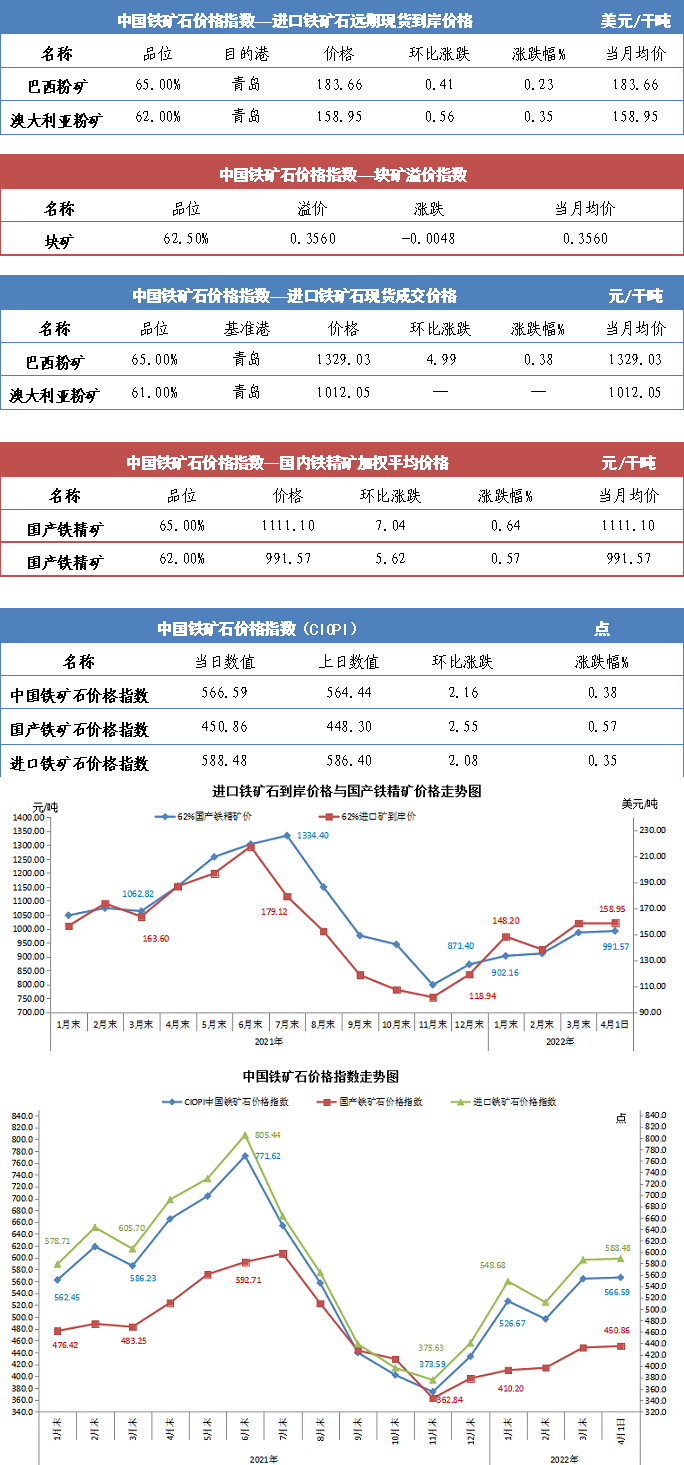 【行業指數】4月1日中國鐵礦石價格指數