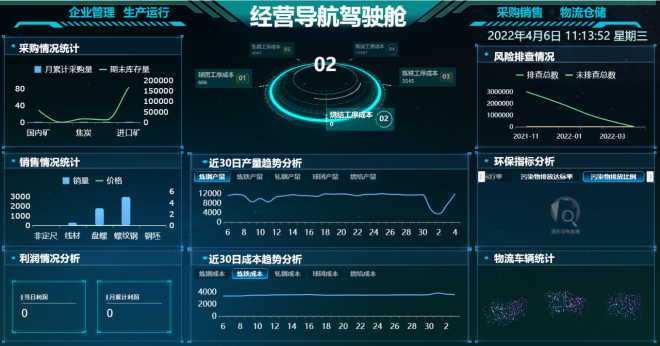 目前,智慧大廳通過原料、燒結、煉鐵、煉鋼、軋鋼、成品6大集群和生產、能源、物流、設備、安全、環保、安防7大da模mo塊kuai集ji中zhong管guan控kong,不bu斷duan挖wa掘jue各ge方fang麵mian數shu據ju背bei後hou的de價jia值zhi,逐zhu步bu實shi現xian讓rang數shu據ju指zhi導dao生sheng產chan經jing營ying。同tong時shi,也ye打da破po鋼gang鐵tie生sheng產chan的de組zu織zhi邊bian界jie,強qiang化hua生sheng產chan工gong序xu協xie同tong,進jin而er提ti高gao生sheng產chan效xiao率lv,降jiang低di生sheng產chan排pai放fang,實shi現xian一yi流liu的de生sheng產chan指zhi標biao。