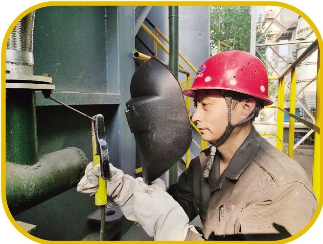 相對而言,帶壓焊接堵漏技術難度大、危險性高,但史秀寶憑借紮實精湛的技術,可以在生產過程不間斷的情況下完成帶壓焊接堵漏,節約時間。