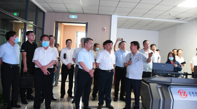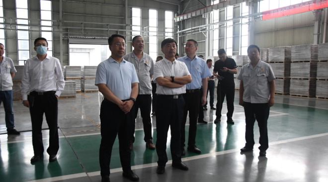 圖為丁毅一行在市、縣領導和晉南鋼鐵集團領導的陪同下參觀晉南鋼鐵