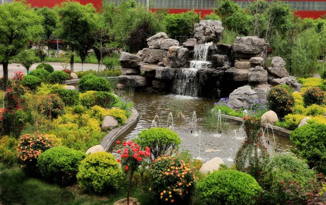 圖為陝鋼龍鋼公司景區假山噴泉 楊軍攝