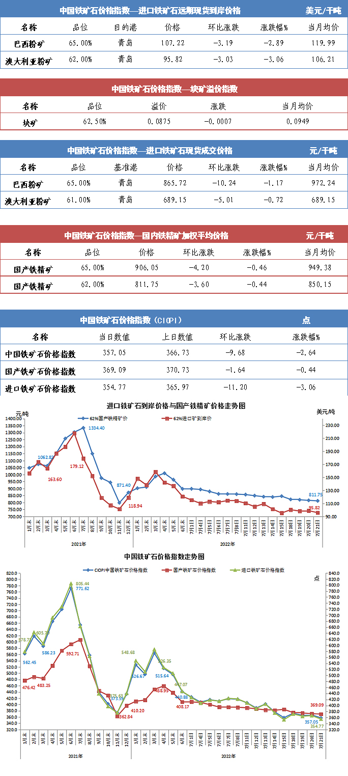 【行業指數】7月21日中國鐵礦石價格指數