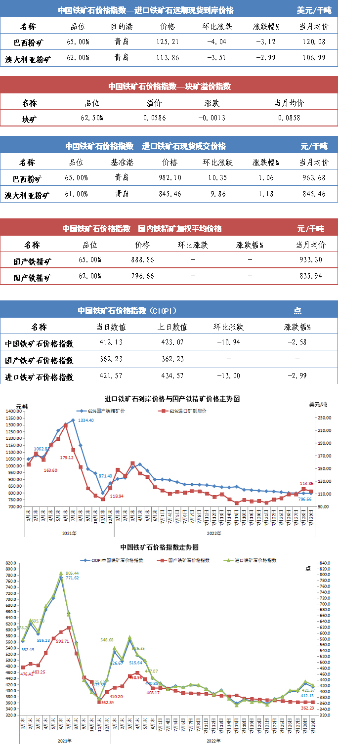 【行業指數】7月29日中國鐵礦石價格指數