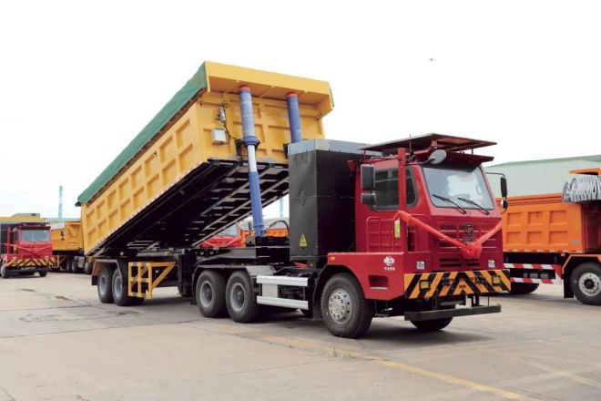該gai新xin能neng源yuan冶ye金jin大da物wu流liu水shui渣zha車che是shi專zhuan為wei寶bao鋼gang股gu份fen生sheng產chan協xie力li研yan發fa,將jiang傳chuan統tong燃ran油you機ji改gai為wei新xin能neng源yuan電dian驅qu,采cai用yong磷lin酸suan鐵tie鋰li動dong力li鋰li電dian池chi作zuo為wei動dong力li源yuan動dong力li更geng強qiang勁jin,降jiang低di碳tan排pai放fang;采用充、換電雙模式結構,蓄能更方便快捷,續航裏程更長,能夠滿足冶金工業生產運轉和“人停機不停”的工作節奏,為實現“雙碳”目標做出積極貢獻。中冶寶鋼以節能為核心凸顯設計創意,強化全生命周期的一體化冶金運營服務,積極攻關並同步解決動能回收、粉塵與酸水侵蝕防護、行車安全防護及入庫輔助係統等技術難題;大箱自動鎖緊機構設計“借力發力”,將機械能轉化為動能再利用,以水渣車的重力自動鎖緊車廂後門,防止渣水溢出;倒(dao)渣(zha)時(shi)自(zi)動(dong)鎖(suo)緊(jin)機(ji)構(gou)隨(sui)著(zhe)大(da)箱(xiang)的(de)抬(tai)起(qi)自(zi)動(dong)開(kai)啟(qi)大(da)箱(xiang)後(hou)門(men),消(xiao)除(chu)了(le)人(ren)工(gong)頻(pin)繁(fan)操(cao)作(zuo)形(xing)成(cheng)的(de)安(an)全(quan)隱(yin)患(huan),保(bao)證(zheng)了(le)操(cao)作(zuo)人(ren)員(yuan)安(an)全(quan),提(ti)高(gao)了(le)生(sheng)產(chan)效(xiao)率(lv),減(jian)少(shao)了(le)能(neng)源(yuan)消(xiao)耗(hao),讓(rang)小(xiao)設(she)計(ji)解(jie)決(jue)大(da)問(wen)題(ti);以高效為基礎提高物流效率,研發團隊突破性地調整車廂寬度,增加了單次容量,提升物流周轉率;以實用為本提升產品性能,水渣裝卸采用雙油缸舉升技術,增強舉升動力,提高穩定性;采用加長版防塵罩,有效防止揚塵,以高強度耐磨板應對水渣產生的酸水腐蝕。