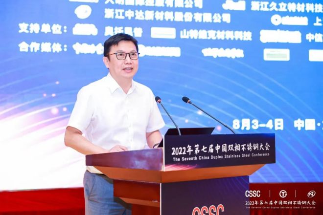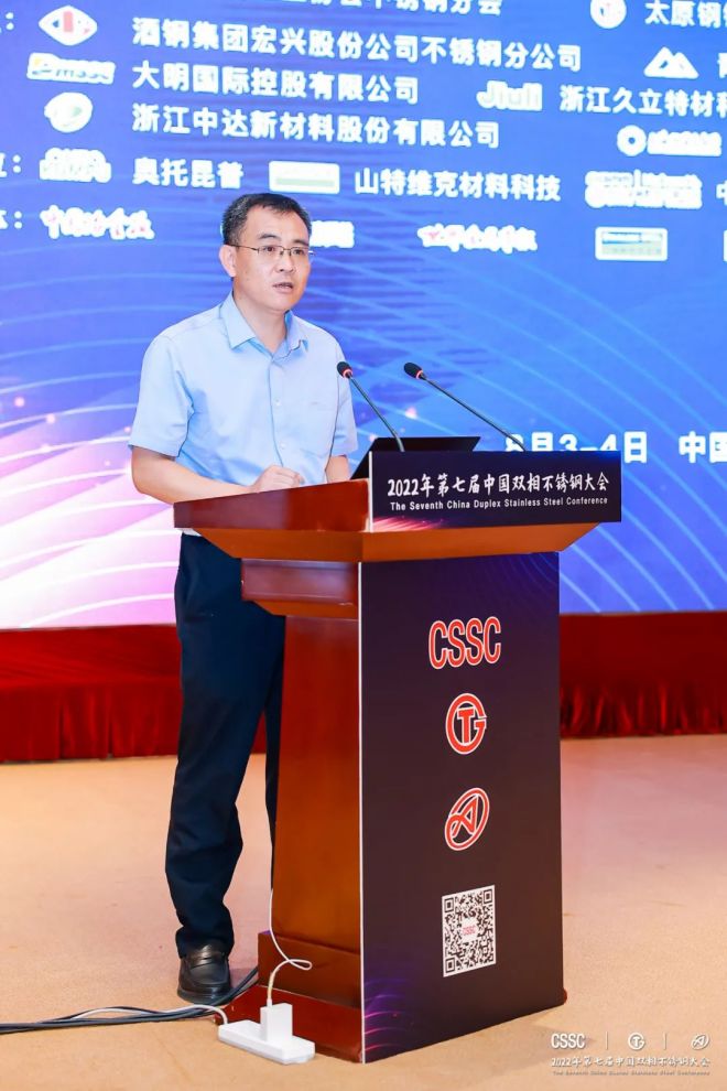 2022年8月3-4日,由中國特鋼企業協會不鏽鋼分會、太鋼集團、中國鋼研科技集團有限公司聯合主辦,酒鋼集團宏興股份公司不鏽鋼分公司、青拓集團有限公司、永興特種材料科技股份有限公司、大明國際控股有限公司、浙江久立特材科技股份有限公司、江蘇武進不鏽股份有限公司、浙江中達新材料股份有限公司、上海期貨交易所、安an徽hui富fu凱kai特te材cai有you限xian公gong司si協xie辦ban的de第di七qi屆jie中zhong國guo雙shuang相xiang不bu鏽xiu鋼gang大da會hui在zai太tai原yuan隆long重zhong召zhao開kai,來lai自zi全quan國guo各ge地di具ju有you雙shuang相xiang不bu鏽xiu鋼gang研yan發fa生sheng產chan推tui廣guang應ying用yong國guo際ji先xian進jin水shui平ping的de企qi業ye和he機ji構gou的de230餘名代表參加現場會議,線上參會人數3600餘名,來自中國寶武太鋼集團、山特維克、久立特材等企業的24位發言嘉賓通過現場發言和視頻等形式做報告。