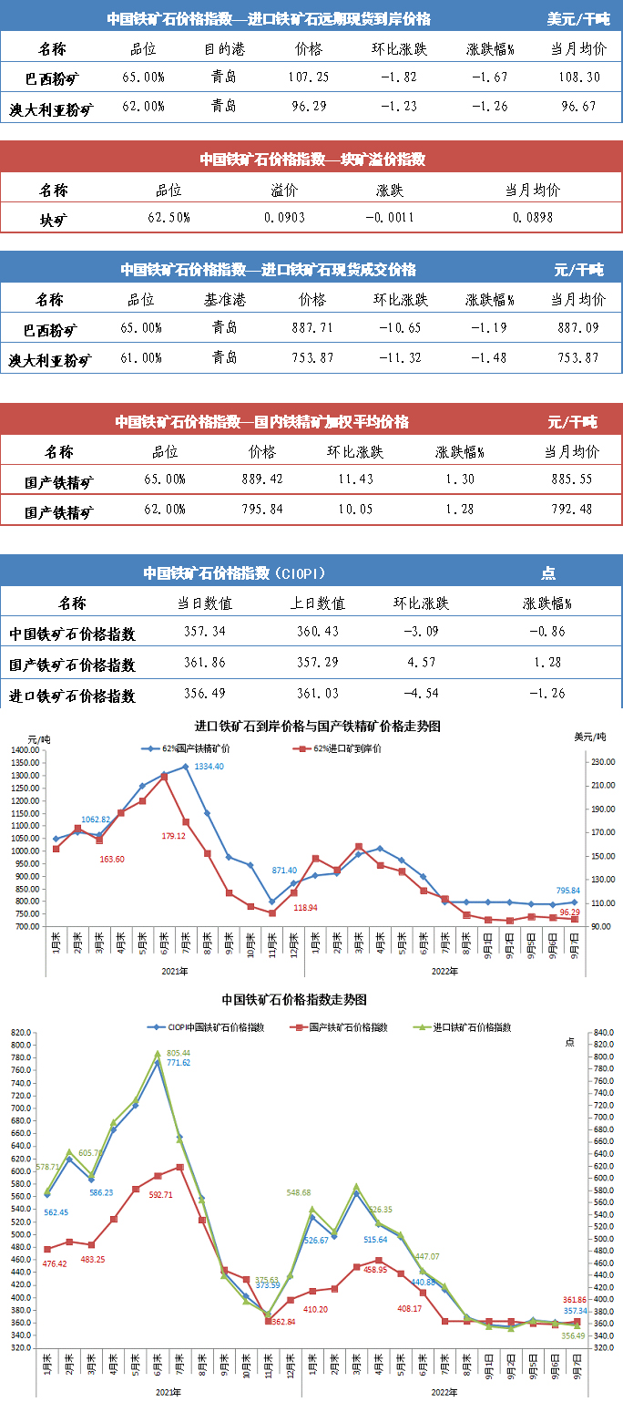 【行業指數】9月7日中國鐵礦石價格指數